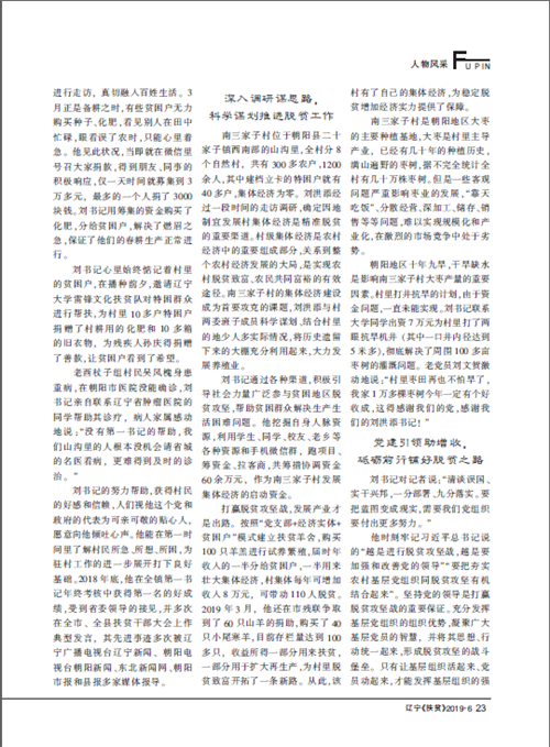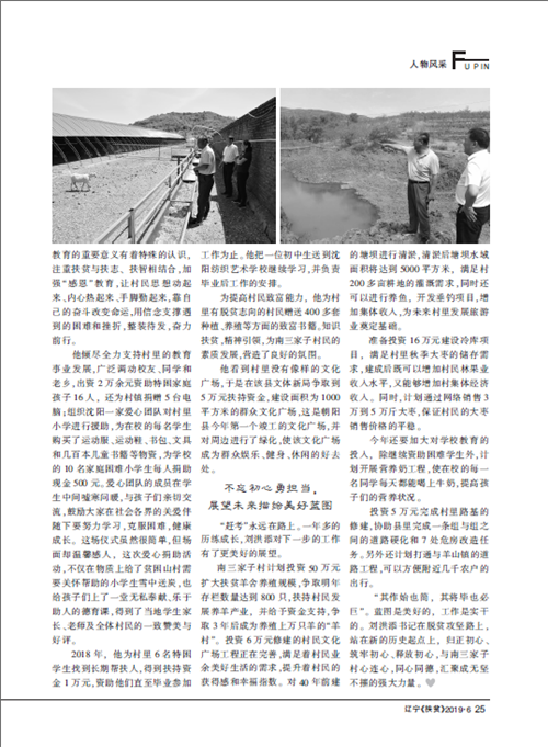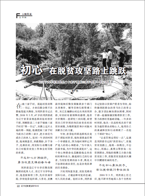 近日,《辽宁扶贫》2019年第6期(总第114期)在“人物风采”栏目以“初心 在脱贫攻坚的路上跳跃——记beat365亚洲版官网驻朝阳县二十家子镇南三家子村第一书记刘洪添”为题,对我校驻村扶贫干部刘洪添进行专题报道,并将其作为该期封面人物。现将原文转载如下: