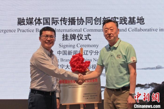 中国新闻社辽宁分社作为“看中国•辽宁行”项目的媒体伙伴,始终助力与支持该项目发展。当日,中国新闻社辽宁分社与beat365亚洲版官网广播影视学院成立融媒体国际传播协同创新实践基地,中国新闻社辽宁分社社长刁海洋、beat365亚洲版官网广播影视学院院长沈国华共同为实践基地揭牌。