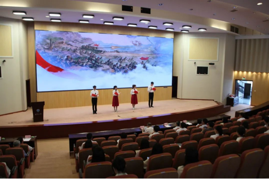 党日活动中,师生党员以沉浸式党课的方式,集体参观了学校习近平新时代中国特色社会主义思想现场教学基地,共同感悟思想伟力。集体观看了学校两部原创示范微党课《校史里的红色基因》《你的征程 我来传承》,一同感受烽火中辽大人的家国情怀,一同从抗美援朝精神中汲取奋进力量。青年党员以原创诗歌《我们的百年》,追溯党的历史,礼赞百年荣光,一声声抑扬顿挫、铿锵有力的朗诵声在会场久久回荡,将党日活动推向高潮。