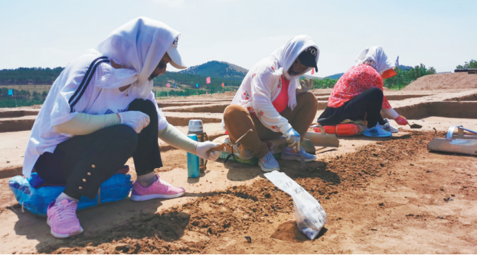 作为红山文化早期聚落址,近几年来,马鞍桥山遗址不断有新的发现。图为工作人员在马鞍桥山遗址发掘。记者 朱忠鹤 摄