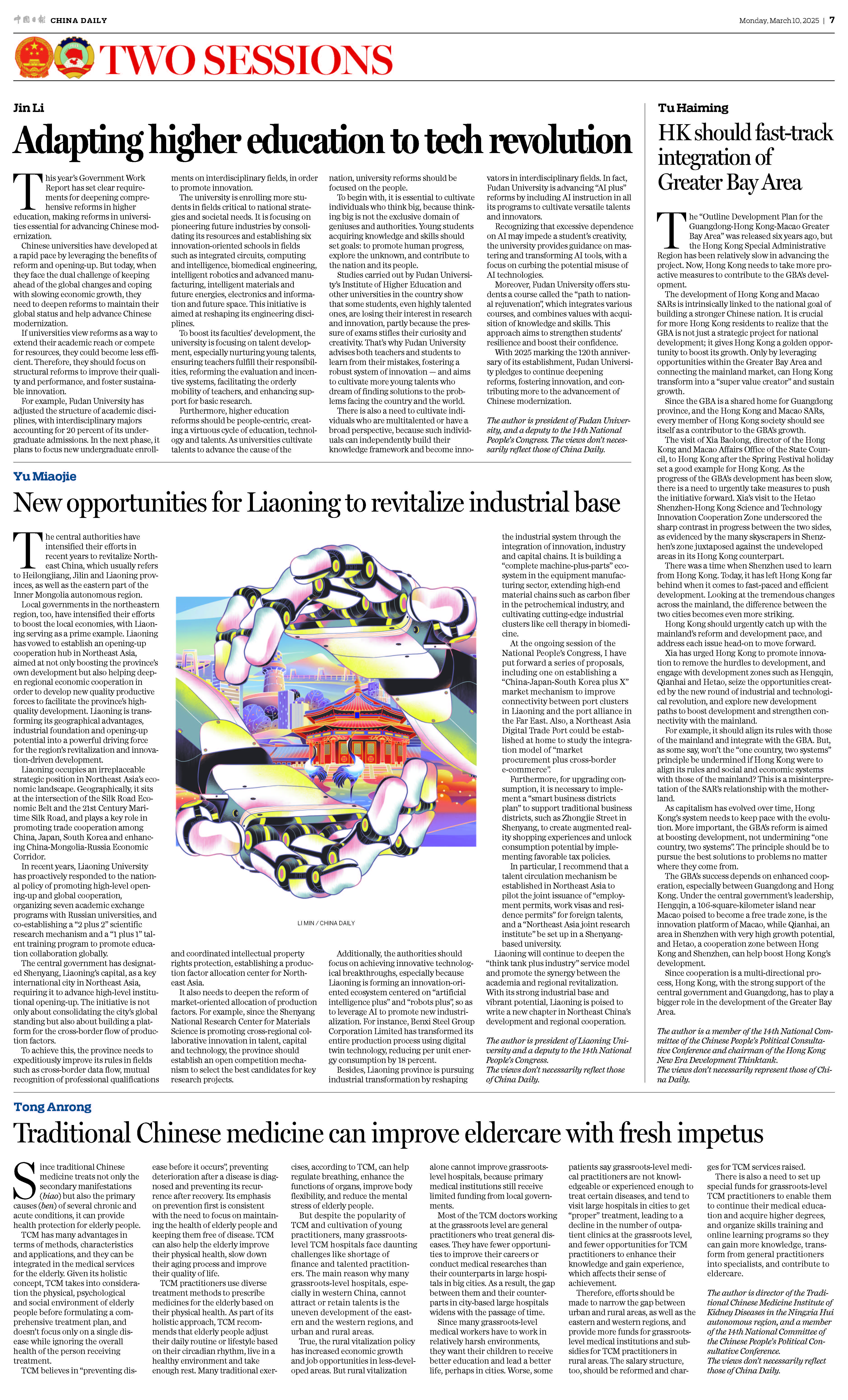 At the ongoing session of the National People's Congress, I have put forward a series of proposals, including one on establishing a "China-Japan-South Korea plus X" market mechanism to improve connectivity between port clusters in Liaoning and the port alliance in the Far East. Also, a Northeast Asia Digital Trade Port could be established at home to study the integration model of "market procurement plus cross-border e-commerce".